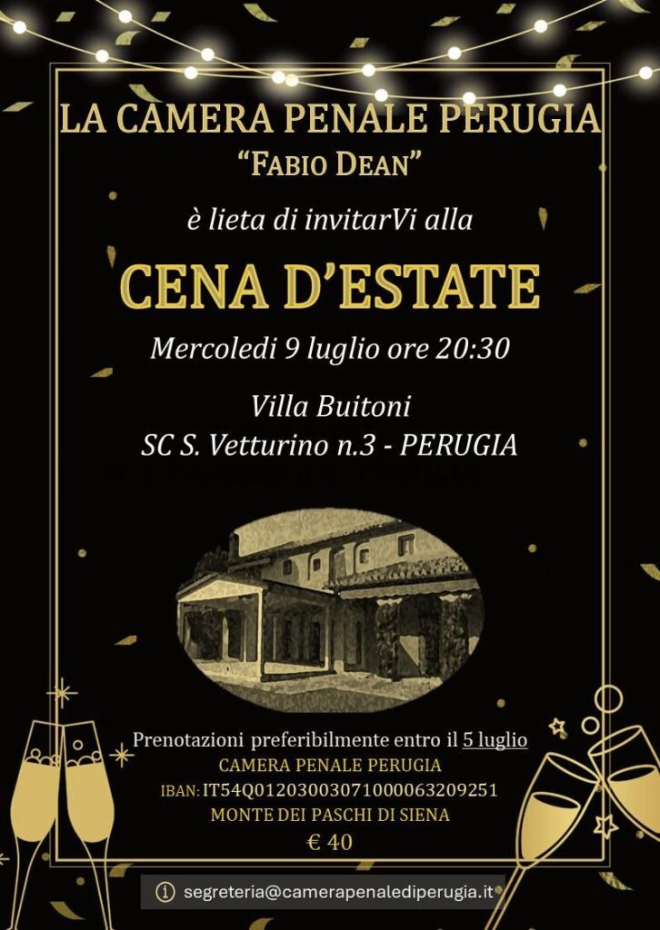 Cena d’estate della Camera Penale di Perugia 09 luglio 2025 Villa Buitoni Perugia